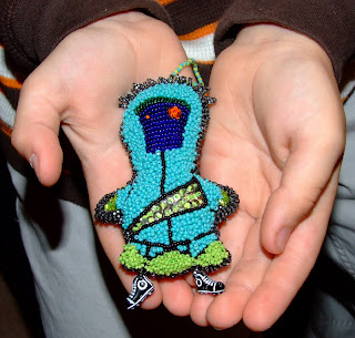 Wow, that's a sweet request from your grandson, and I love how you beaded that alien !